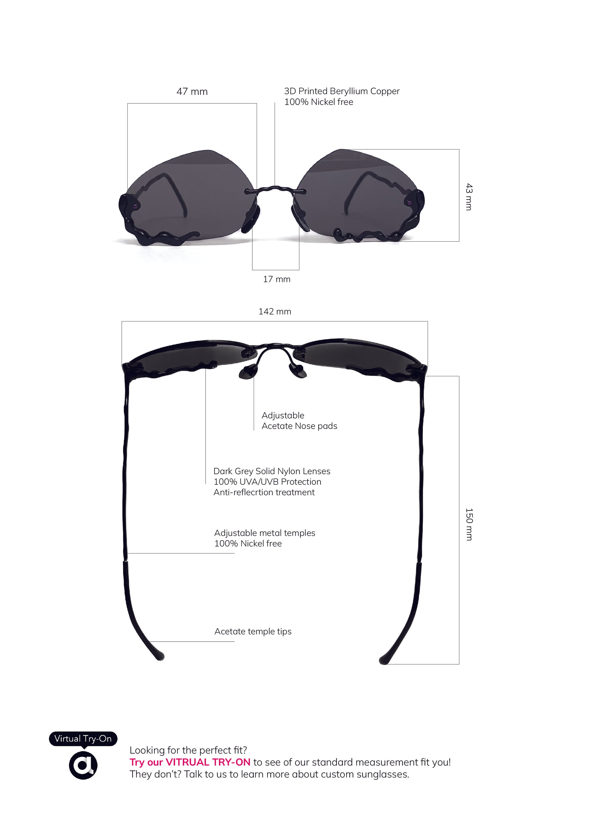 - Color Customization & Made-to-Measure: Tailor the colors to your preference or have your sunglasses crafted to your facial measurements. Pricing and production time will vary based on the complexity of your request.