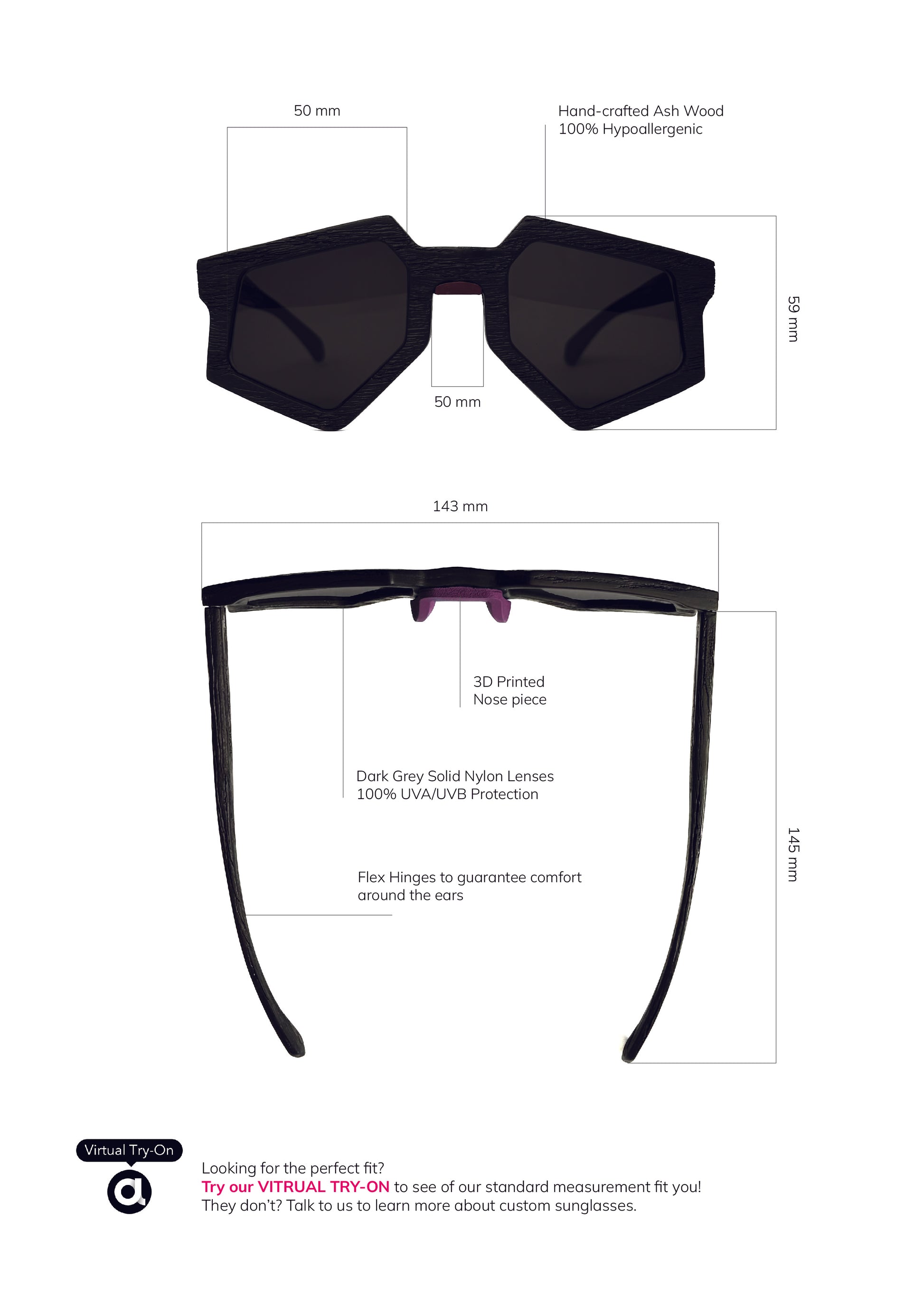 - Color Customization & Made-to-Measure: Tailor the colors to your preference or have your sunglasses crafted to your facial measurements. Pricing and production time will vary based on the complexity of your request.