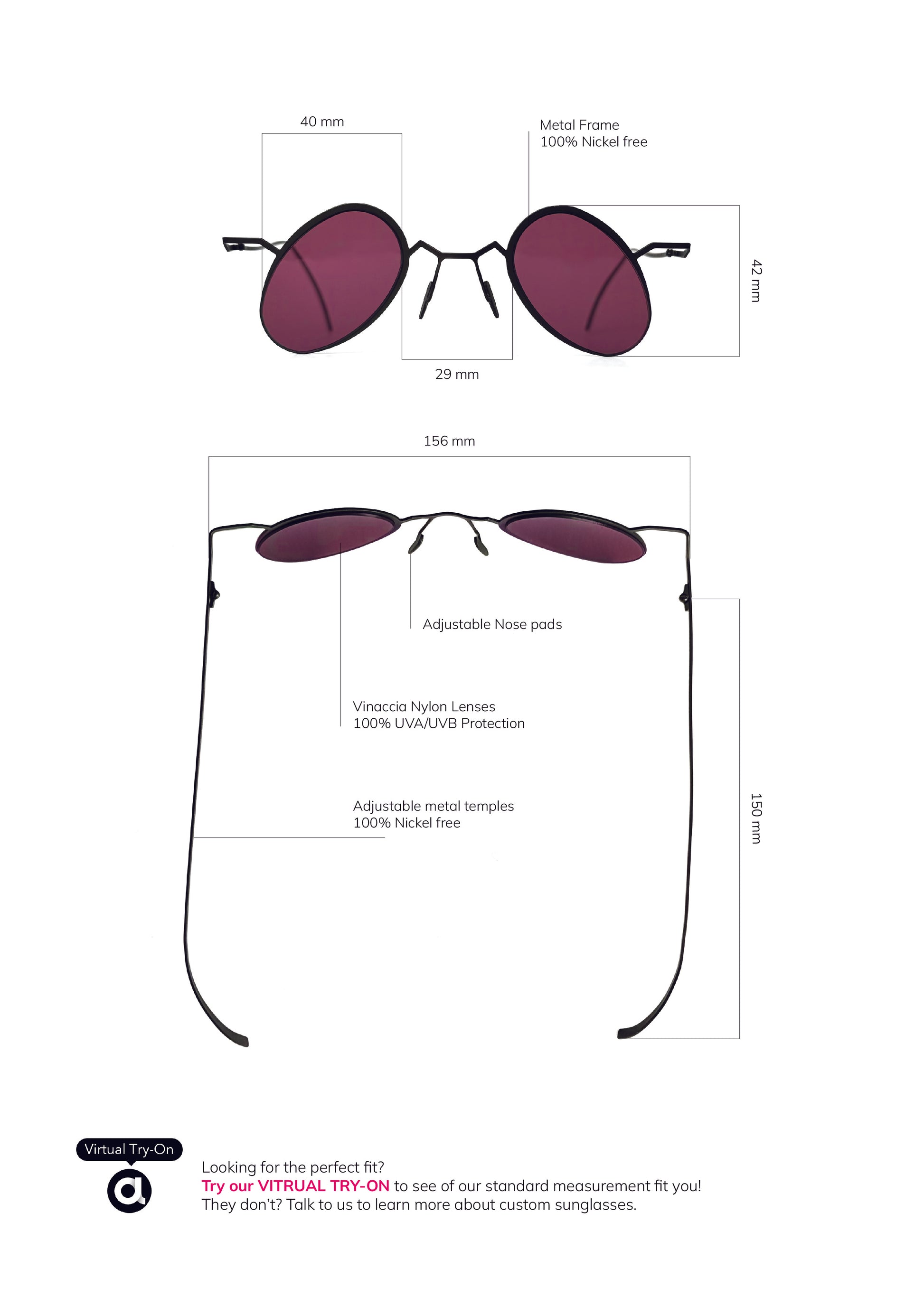 - Color Customization & Made-to-Measure: Tailor the colors to your preference or have your sunglasses crafted to your facial measurements. Pricing and production time will vary based on the complexity of your request.