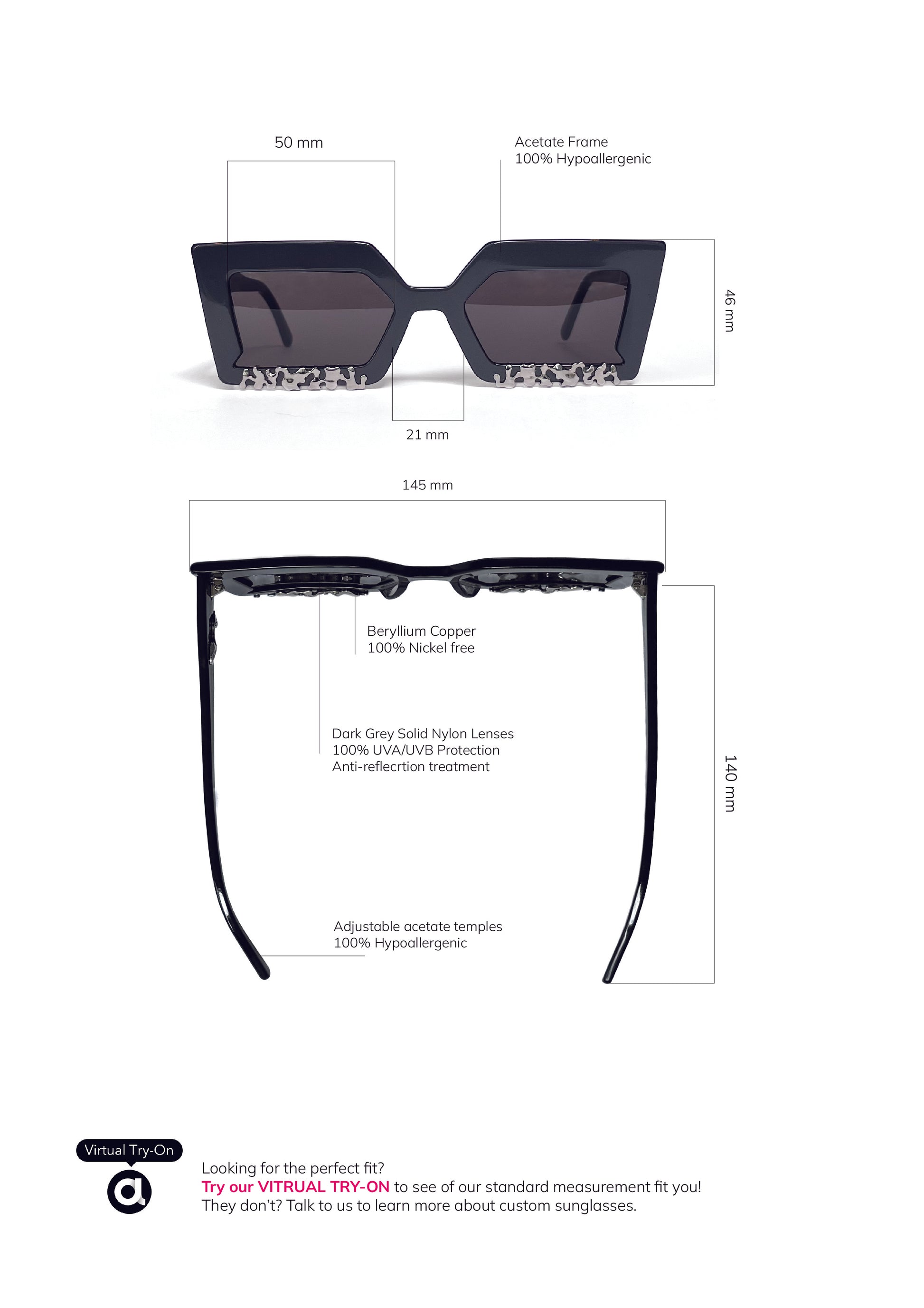 - Color Customization & Made-to-Measure: Tailor the colors to your preference or have your sunglasses crafted to your facial measurements. Pricing and production time will vary based on the complexity of your request.