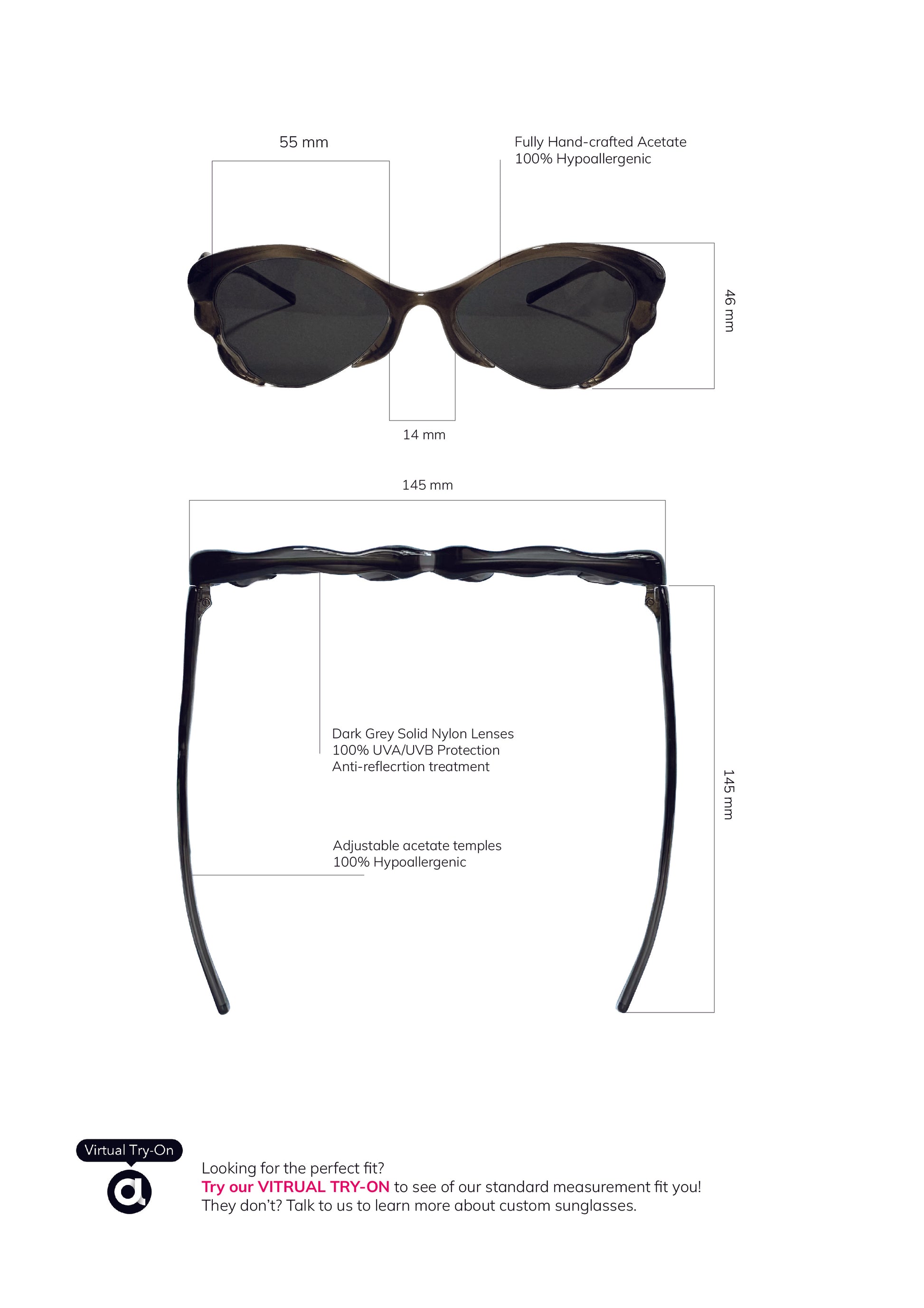 - Color Customization & Made-to-Measure: Tailor the colors to your preference or have your sunglasses crafted to your facial measurements. Pricing and production time will vary based on the complexity of your request.