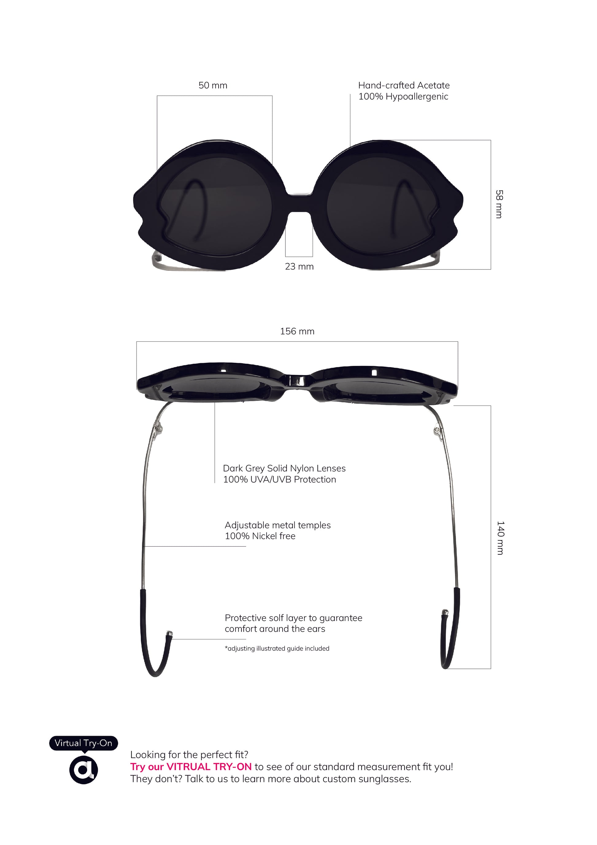 - Color Customization & Made-to-Measure: Tailor the colors to your preference or have your sunglasses crafted to your facial measurements. Pricing and production time will vary based on the complexity of your request.