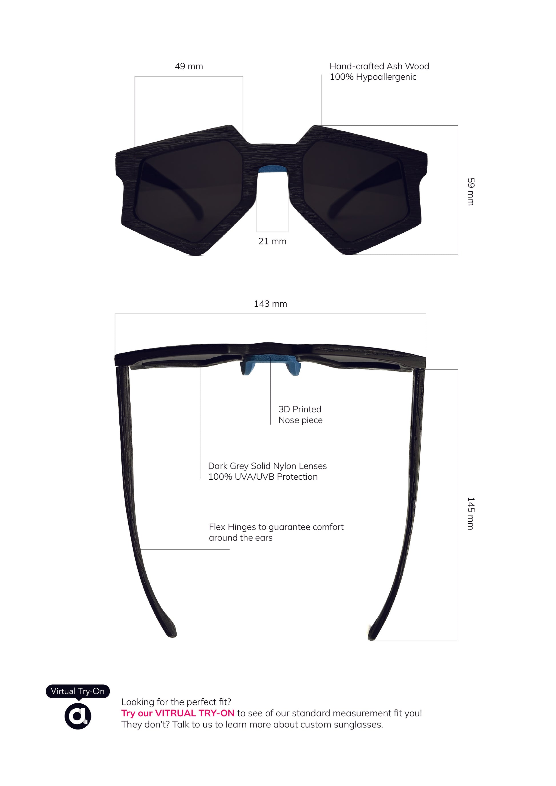 - Color Customization & Made-to-Measure: Tailor the colors to your preference or have your sunglasses crafted to your facial measurements. Pricing and production time will vary based on the complexity of your request.