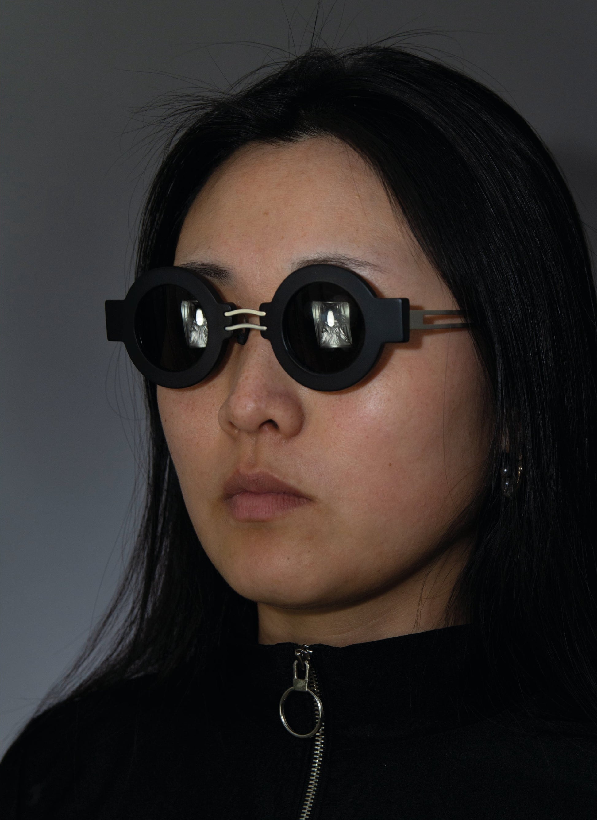 Frame: Matt Black/Transparent Green Acetate and Stainless Steel, 3D printed nose pads and temple tips.