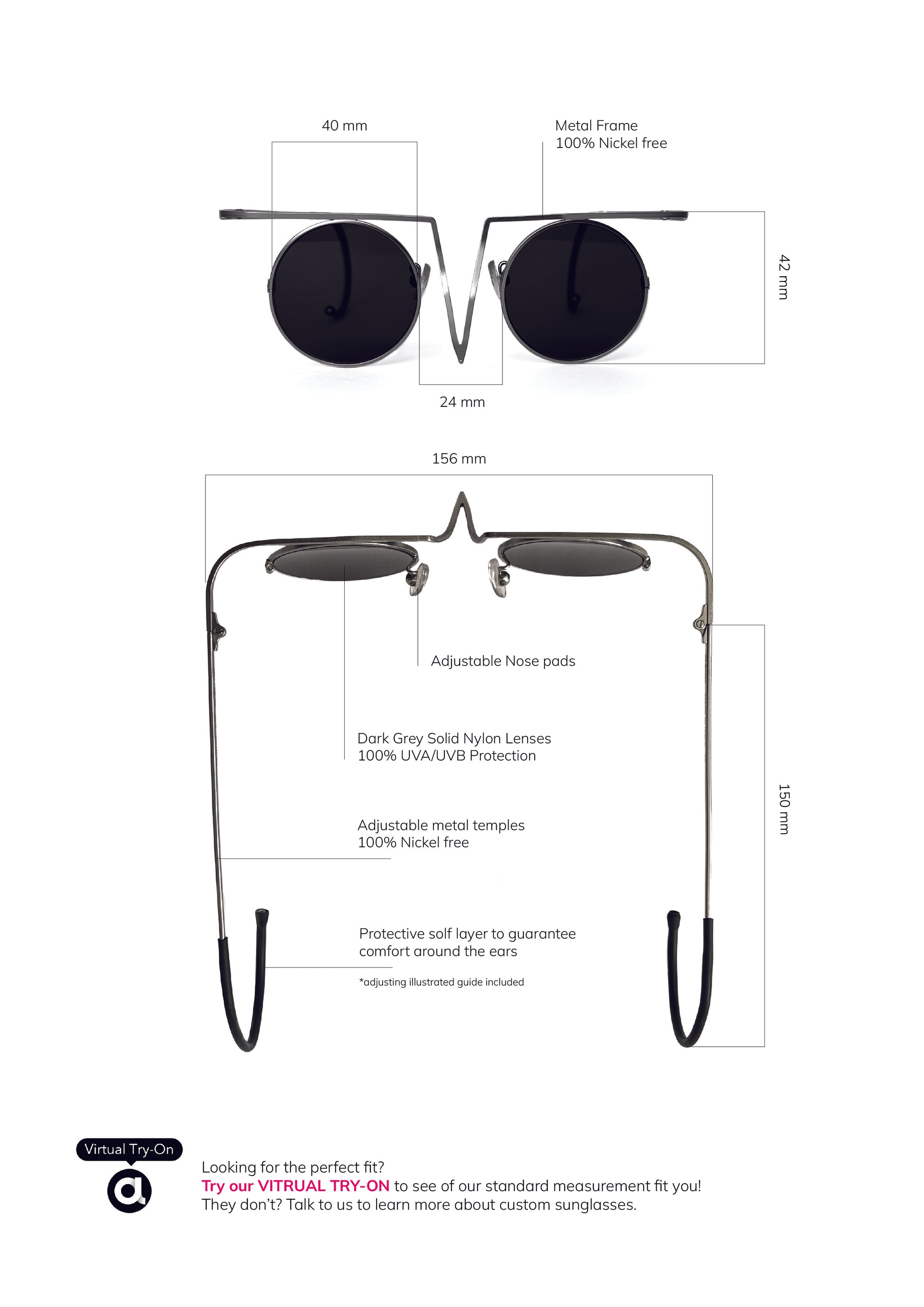 Individually adjustable - Comes with branded eyewear case and cleaning clotH